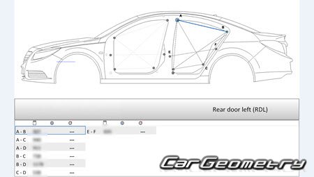 Кузовные размеры для восстановления геометрии кузова автомобилей Opel Insignia 2008–2015 Saloon. С помощью этих данных осуществляется проверка геометрии кузова Sedan, с последующей рихтовкой поврежденных частей автомобилей Опель Инсигния Седан. Руководство также может быть использовано для восстановления кузова автомобилей Buick Regal 2011–2015.
