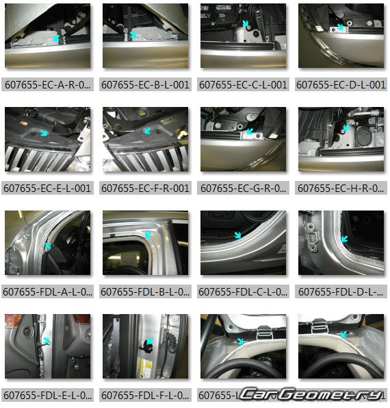 Кузовные размеры Lincoln MKT 2010-2018 для восстановления геометрии кузова автомобилей. С помощью этих данных осуществляется проверка геометрии кузова 2wd/4WD, с последующей рихтовкой поврежденных частей автомобилей Линкольн МКТ.