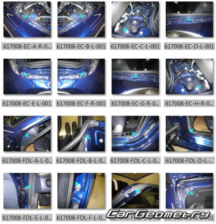 Выборка из стендовых баз по Porsche Boxster (987) 2005–2012 Body dimensions, стендовые размеры кузова и контрольные точки геометрии Порше Бокстер 987.