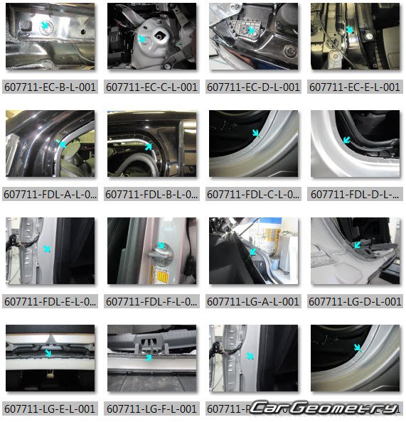 Кузовные размеры Lincoln MKX 2016-2019 для восстановления геометрии кузова автомобилей. С помощью этих данных осуществляется проверка геометрии кузова, с последующей рихтовкой поврежденных частей автомобилей Линкольн MKX.