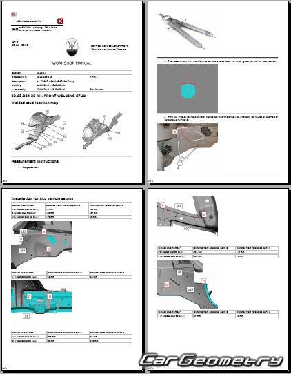 Выборка из заводской документации и различных стендовых баз по Maserati Ghibli III (M157) 2013-2023 Body dimensions, стендовые размеры кузова и контрольные точки геометрии Мазерати Джибли.