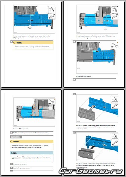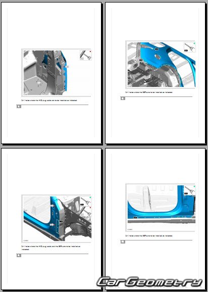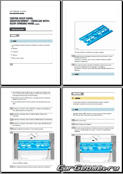 Заводское руководство по ремонту кузова Land Rover Discovery 5 (L462) 2017-2026 включает описание замены различных элементов кузова и кузовные размеры, контрольные точки геометрии кузова Ленд Ровер Дисковери пятого поколения.