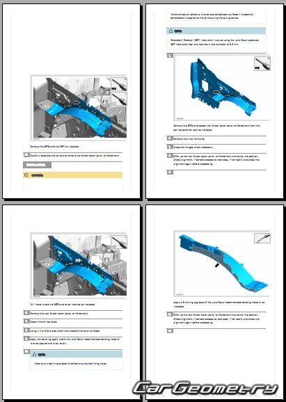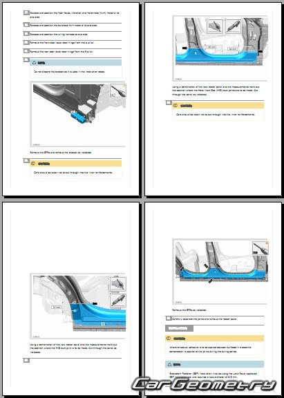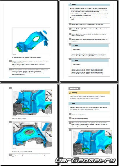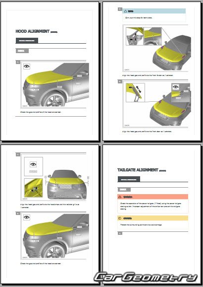Руководство по кузовным работам Range Rover Velar (L560) 2017-2024 Body Repair Manual на английском языке содержит 490 страниц исключительно полезной и необходимой информации для мастеров, которые проверяют геометрию кузова после ДТП и хотят выполнить восстановление Рендж Ровер Велар согласно рекомендациям завода изготовителя.