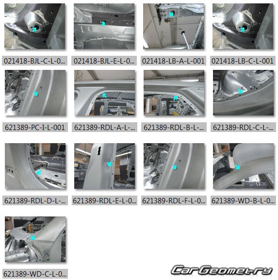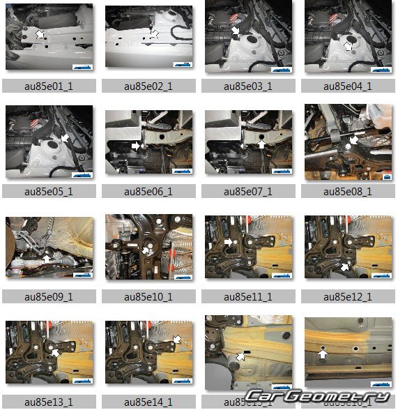 Кузовные размеры для восстановления геометрии кузова автомобилей Audi A1 (GB) 2019-2025 Sportback. С помощью этих данных осуществляется проверка геометрии кузова, с последующей рихтовкой поврежденных частей автомобилей Ауди A1 с 2019.