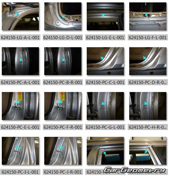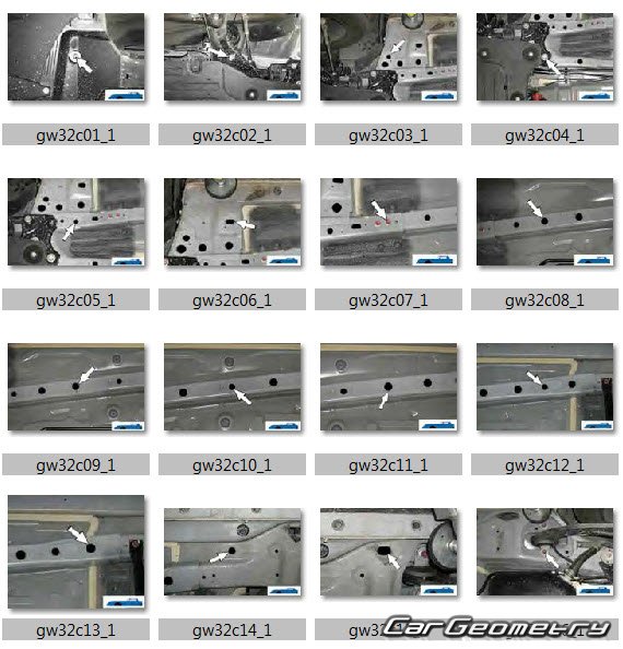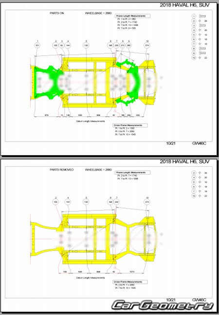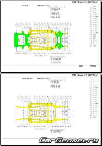 Заводское руководство по ремонту кузова на английском языке Haval H6 с 2013 Body dimensions, стендовые размеры кузова и контрольные точки геометрии Хавал H6.