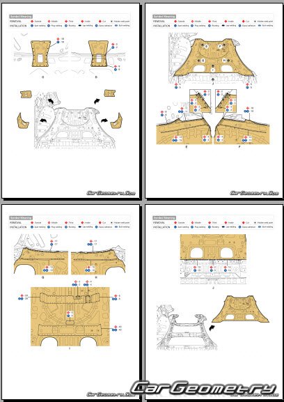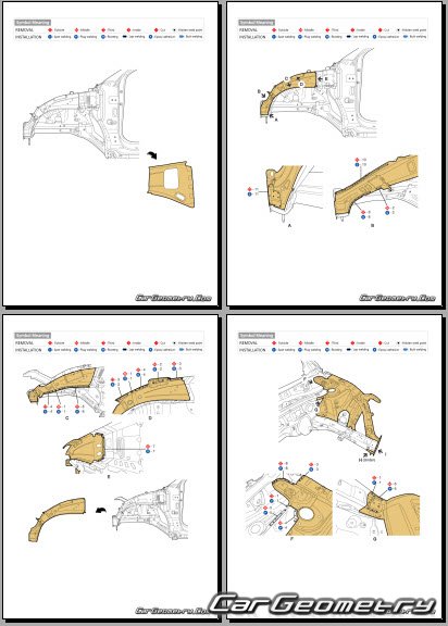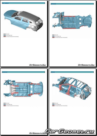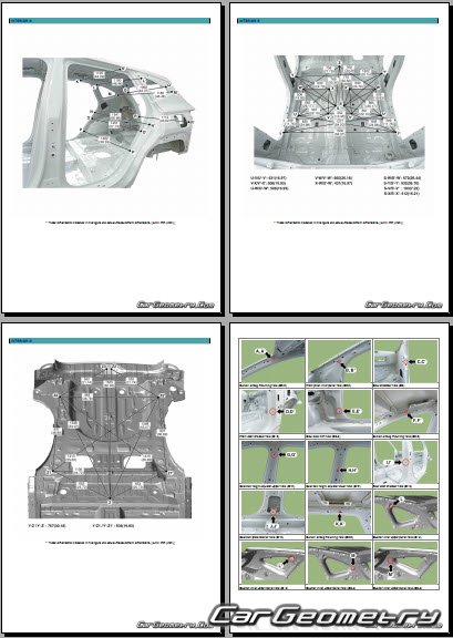 Информация по геометрическим размеры кузова Hyundai Tucson NX4e HEV, контрольным точкам, изображения сечений кузовных элементов, применяемым материалам, рекомендации по применимым типам, методам, материалам и местам сварки; места и материалы для нанесения шовных, звукоизолирующих, антикоррозионных мастик; места и направления резки кузовных элементов для последующей установки новых; типы материалов интерьера, обозначение и расшифровка.