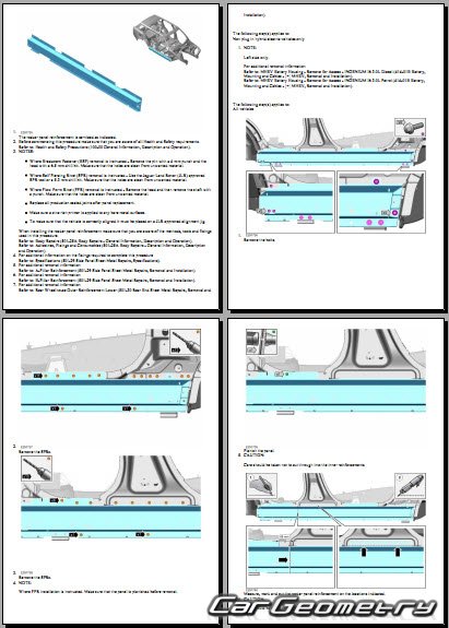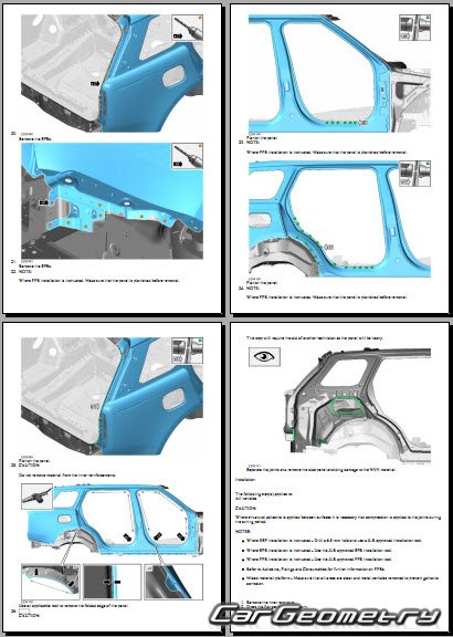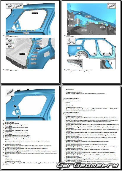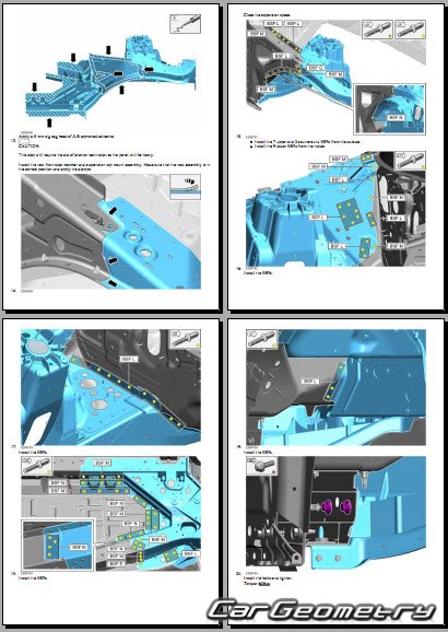 Руководство по кузовным работам Range Rover (L460) 2022-2028 Body Repair Manual на английском языке содержит 1150 страниц исключительно полезной и необходимой информации для мастеров, которые проверяют геометрию кузова после ДТП и хотят выполнить восстановление Рендж Ровер Л460 согласно рекомендациям завода изготовителя.