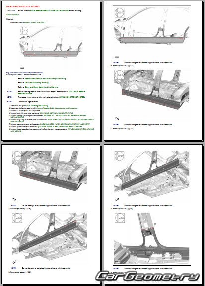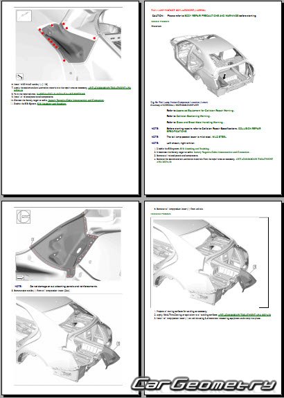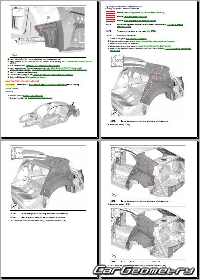 Заводское руководство по ремонту кузова Cadillac CT4 2019-2026 включает кузовные размеры, контрольные точки геометрии кузова. С помощью этих данных осуществляется проверка геометрии кузова, с последующей рихтовкой поврежденных частей Кадиллак СТ4.