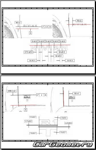 Выборка из заводской документации и различных стендовых баз по Rivian R1T 2022-2029 Body dimensions, стендовые размеры кузова и контрольные точки геометрии Ривиан Р1Т.