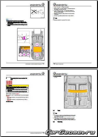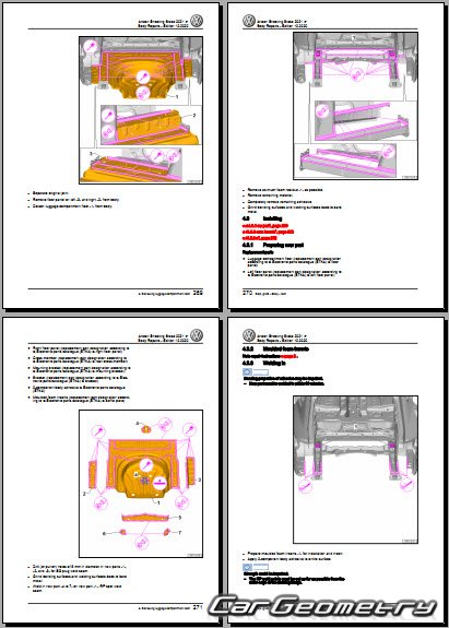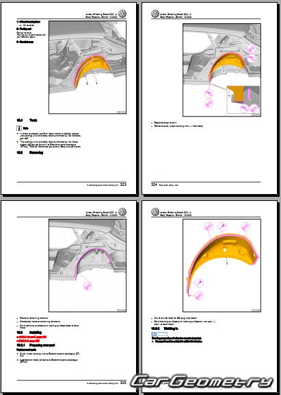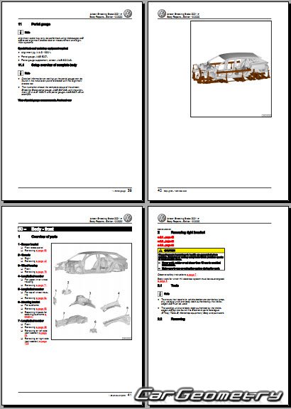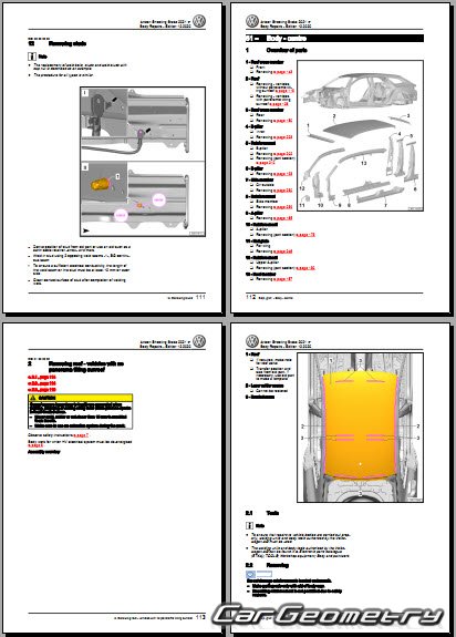 Заводское руководство содержит контрольные размеры кузова Volkswagen Arteon Wagon (3H) 2017-2025 Body Repair Manual и включает описание замены различных элементов кузова Wagon, контрольные точки геометрии кузова Фольксваген Артеон Шутинг Брейк.