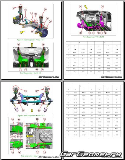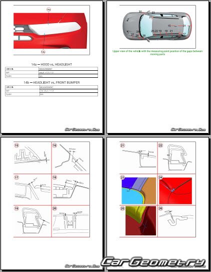 Кузовные размеры Dodge Hornet 2022-2030 для восстановления геометрии кузова. С помощью этих данных осуществляется проверка геометрии кузова, с последующей рихтовкой поврежденных частей автомобилей Додж Хорнет.