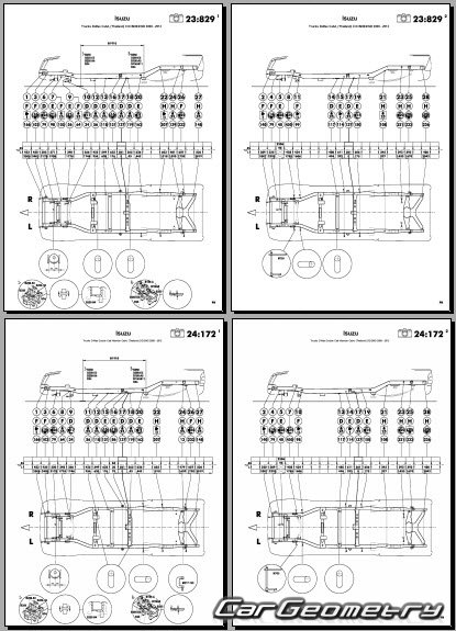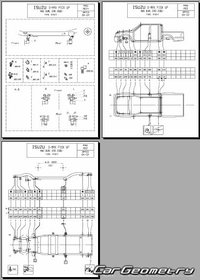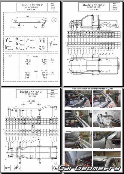 Выборка из заводской документации и различных стапельных баз по Isuzu D-Max Body dimensions, стендовые размеры кузова и контрольные точки геометрии Исузу Д-Макс.
