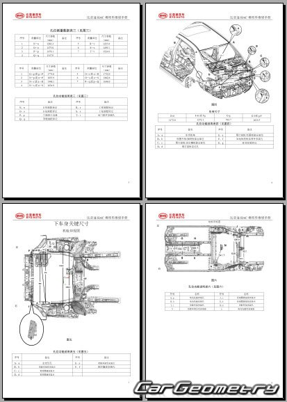 Выборка из заводской документации и измерительных систем по BYD Qin EV 2014–2021 Body dimensions, стендовые размеры кузова и контрольные точки геометрии БИД Квин ЕВ.