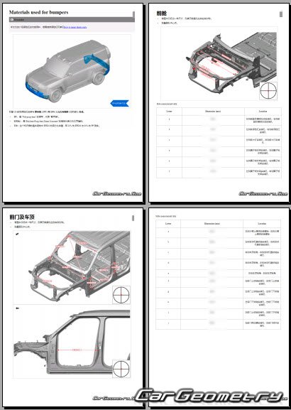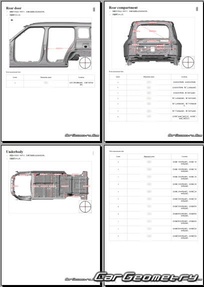 Кузовные размеры для восстановления геометрии кузова автомобилей BYD Yangwang U8 PHEV 2025-. С помощью этих данных осуществляется проверка геометрии кузова SUV, с последующей рихтовкой поврежденных частей автомобилей БИД Янг Ванг Ю 8.