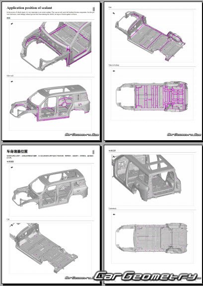 Выборка из заводской документации по BYD Yangwang U8 PHEV 2025- Body dimensions, стендовые размеры кузова и контрольные точки геометрии БИД Янг Ванг Ю 8.