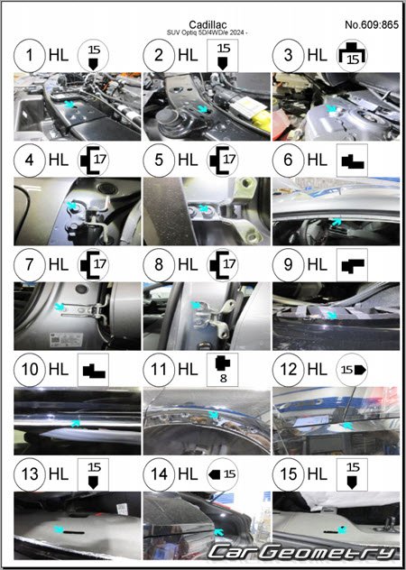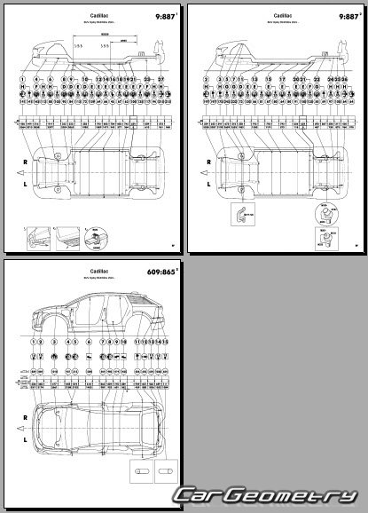 Заводское руководство по ремонту кузова Cadillac Optiq 2024-2030 включает кузовные размеры, контрольные точки геометрии кузова SUV. С помощью этих данных осуществляется проверка геометрии кузова, с последующей рихтовкой поврежденных частей Кадиллак Оптик.