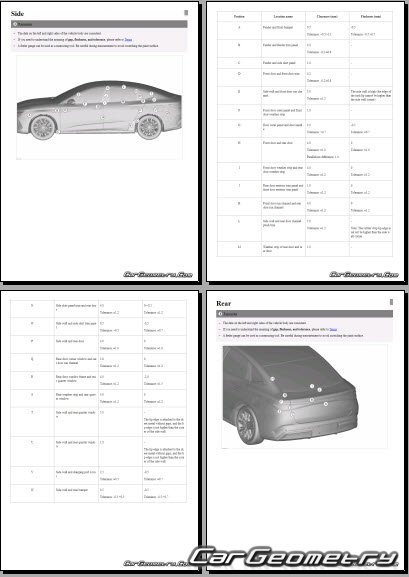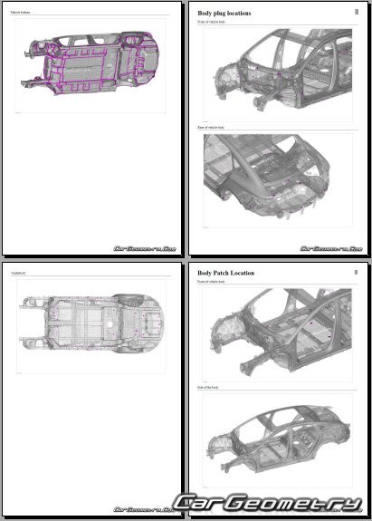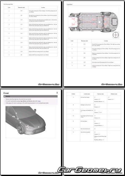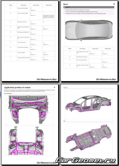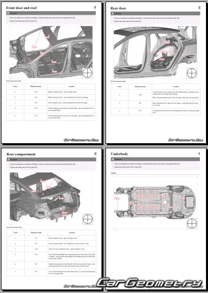 Кузовные размеры для восстановления геометрии кузова автомобилей BYD Seal 7 DM-i 2025-2030. С помощью этих данных осуществляется проверка геометрии кузова Sedan, с последующей рихтовкой поврежденных частей автомобилей БИД Сеал 7 гибрид.