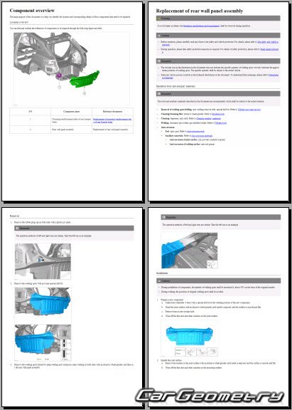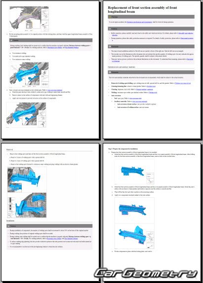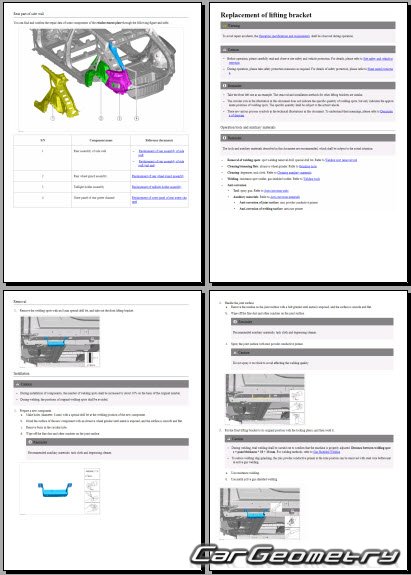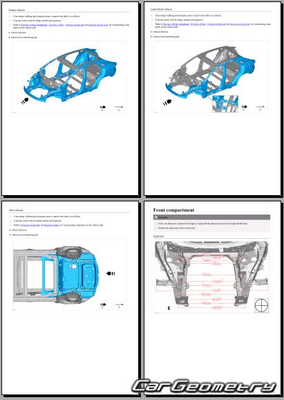 Руководство по кузовным работам BYD Sealion 7 EV 2024–2029 Body Repair Manual на английском языке содержит 250 страниц исключительно полезной и необходимой информации для мастеров, которые проверяют геометрию кузова после ДТП и хотят выполнить восстановление БИД СиаЛион 7 согласно рекомендациям завода изготовителя.