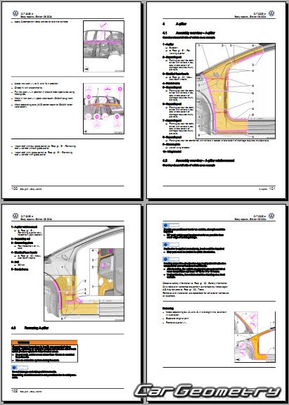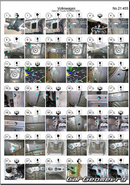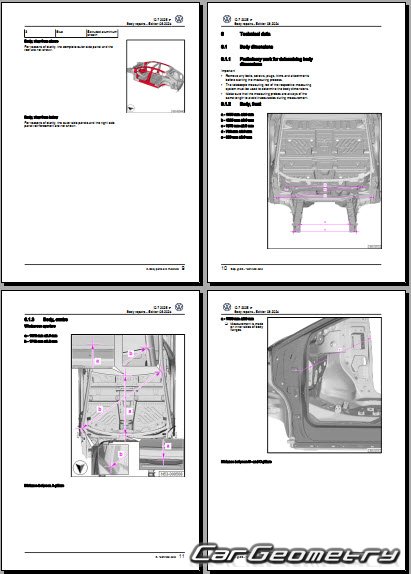 Заводское руководство содержит контрольные размеры кузова Volkswagen ID.7 Tourer 2024-2027 Body Repair Manual и включает описание замены различных элементов кузова Wagon, контрольные точки геометрии кузова Фольксваген ID. 7.