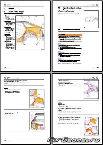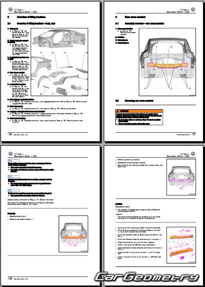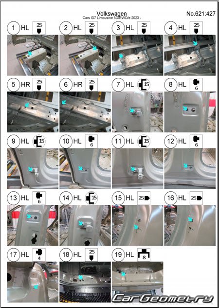 Заводское руководство содержит контрольные размеры кузова Volkswagen ID7 Limousine 2023-2027 Body Repair Manual и включает описание замены различных элементов кузова Sedan, контрольные точки геометрии кузова Фольксваген ID.7.