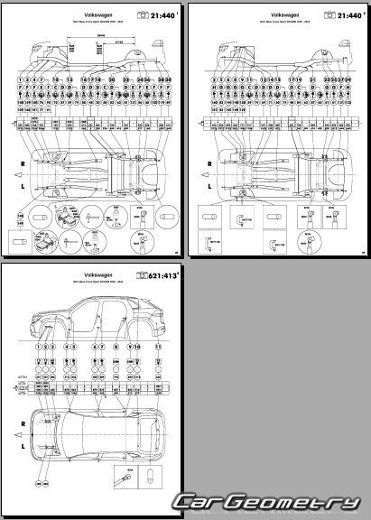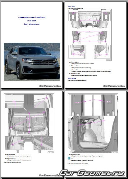 Выборка из различных стапельных баз и оригинальной заводской документации по VW Atlas Cross Sport 2020-2024 Body dimensions, стендовые размеры кузова и контрольные точки геометрии Фольксваген Фольксваген Атлас Кросс Спорт.