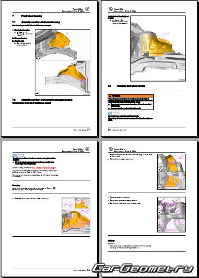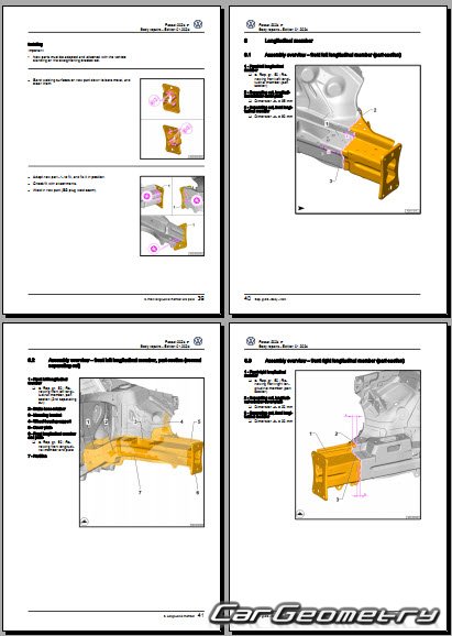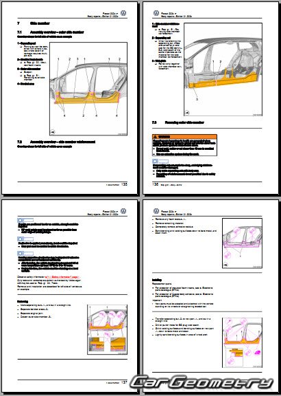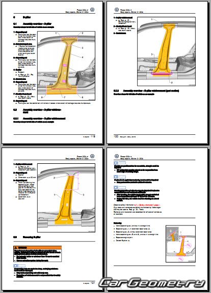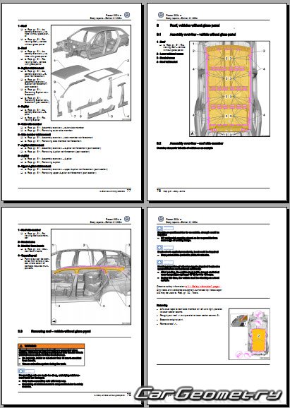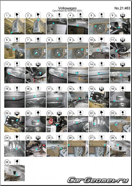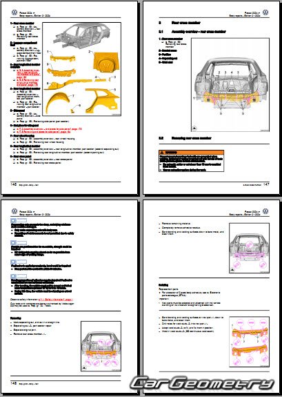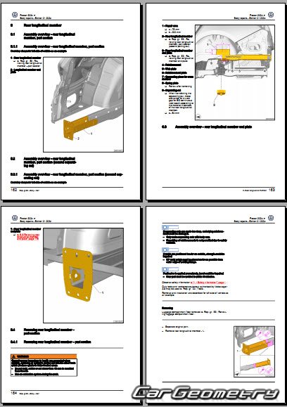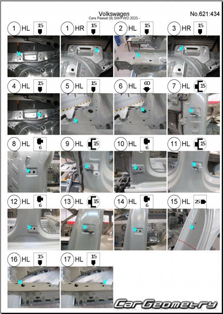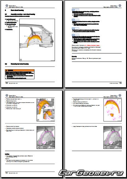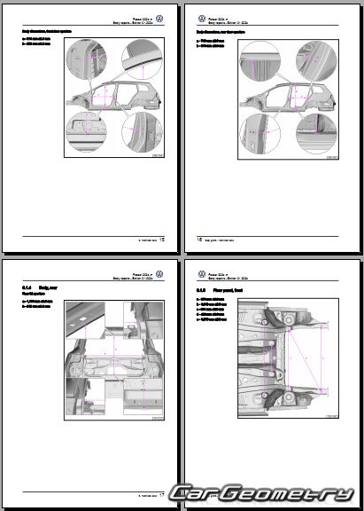 Заводское руководство содержит контрольные размеры кузова Volkswagen Passat (B9) 2023-2032 Body Repair Manual и включает описание замены различных элементов кузова Wagon, контрольные точки геометрии кузова Фольксваген Пассат Б9.
