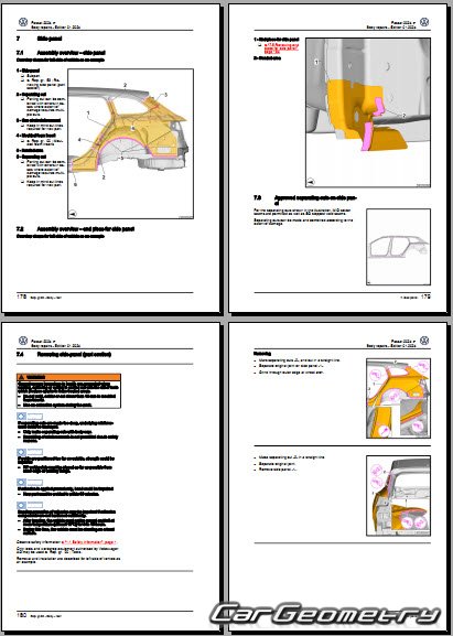 Руководство по кузовному ремонту VW Passat (B9) Wagon 2023-2032 (Body Repairs manual) 192 страниц на английском языке. Данный сборник содержит огромное количество исключительно полезной и необходимой информации для занимающихся кузовным ремонтом самостоятельно и владельцев фирм по кузовному ремонту Фольксваген Пассат Б9 универсал.