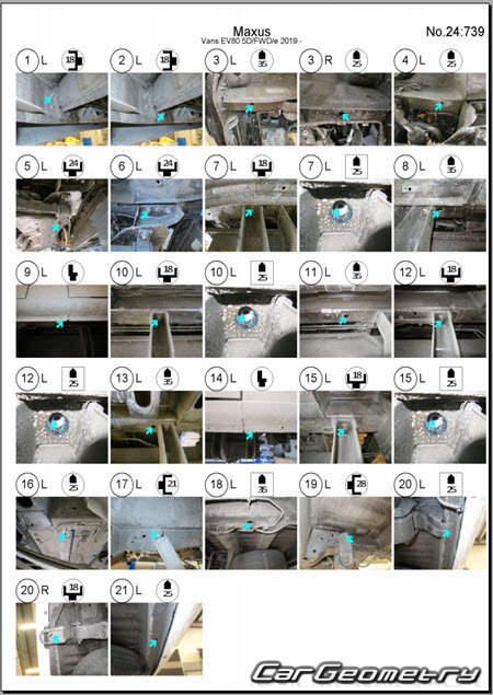 Кузовные размеры для восстановления геометрии кузова автомобилей Maxus EV80 2019-2026. С помощью этих данных осуществляется проверка геометрии кузова, с последующей рихтовкой поврежденных частей автомобилей Максус ЕВ80. На различных рынках автомобиль продается как SAIC Maxus EV80 и LDV EV80 с 2019 года.