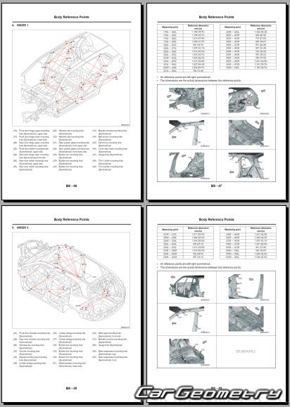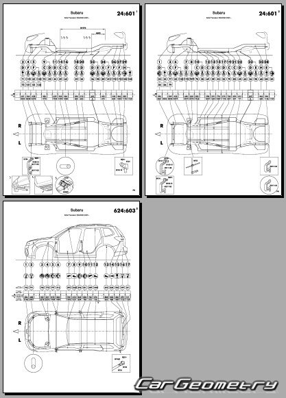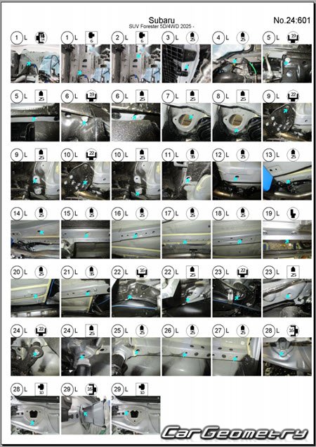 Кузовные размеры Subaru Forester (SL) 2025-2030 для восстановления геометрии кузова. С помощью этих данных осуществляется проверка геометрии кузова, с последующей рихтовкой поврежденных частей Субару Форестер шестого поколения.