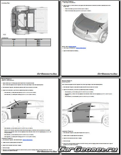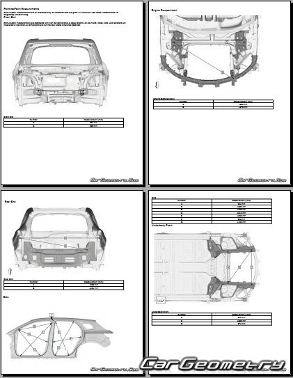 Заводское руководство содержит размеры кузова Honda Prologue 2024-2030 и включает описание замены элементов, кузовные размеры, контрольные точки геометрии кузова Хонда Пролог. Prologue — это электрический среднеразмерный кроссовер (mid-size SUV).