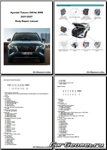 Руководство по кузовному ремонту Hyundai Tucson SWB (NX4e) 2021-2027 Body Repair Manual 264 страниц на английском языке. Данный сборник содержит огромное количество исключительно полезной и необходимой информации для занимающихся кузовным ремонтом самостоятельно и владельцев фирм по кузовному ремонту Хендай Туксан четвертого поколения.