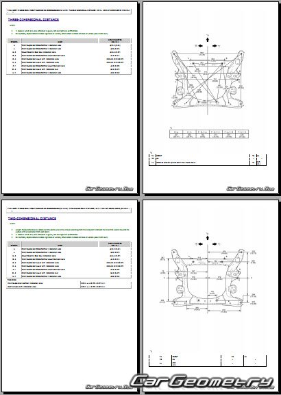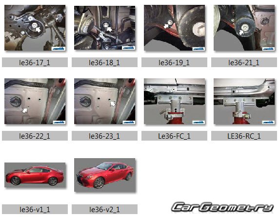 Заводское руководство на английском содержит размеры кузова Lexus RC200T, RC300, RC350 (ASC10, GSC10, GSC15, GSC16) 2021-2025 и включает описание замены различных элементов кузова и кузовные размеры, контрольные точки геометрии кузова Лексус RC 350, RC200T, RC300 рестайлинг.