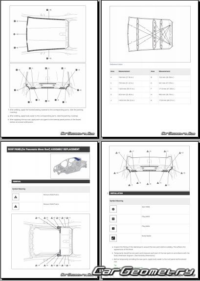 Скачать Заводское руководство по ремонту кузова и размеры кузова