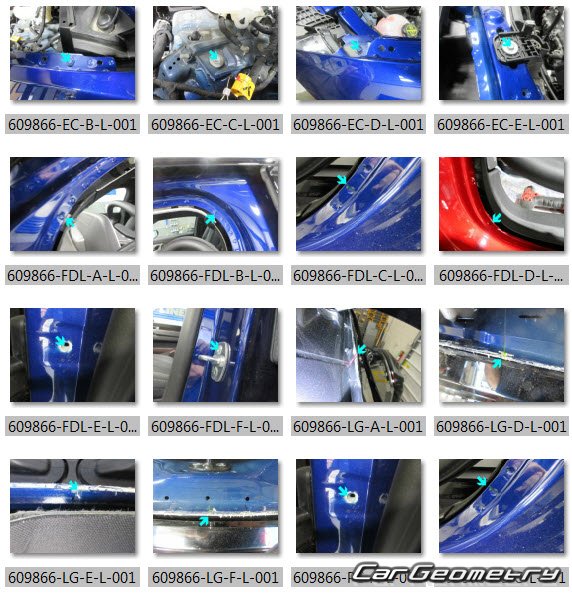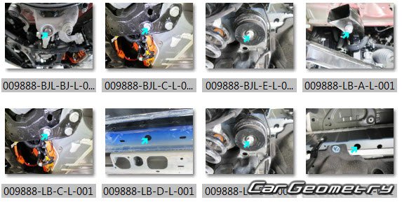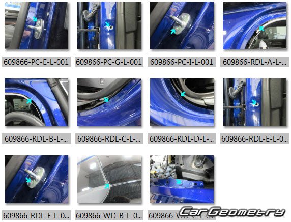 Кузовные размеры для восстановления геометрии кузова Cadillac Vistiq с 2025. С помощью этих данных осуществляется проверка геометрии кузова, с последующей рихтовкой поврежденных частей Кадиллак Вистик.