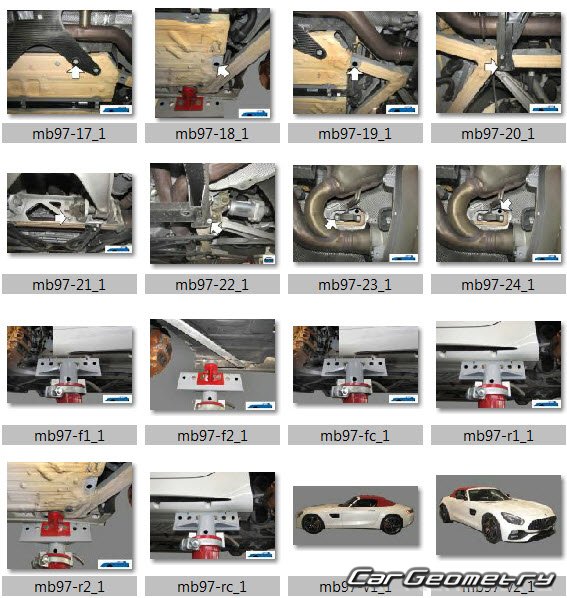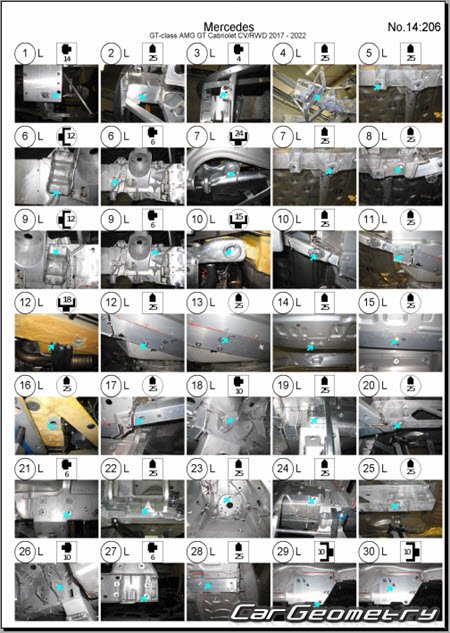 Кузовные размеры для восстановления геометрии кузова Mercedes AMG GT Cabrio (R190) 2017-2022 Body dimensions. С помощью этих данных осуществляется проверка геометрии кузова с последующей рихтовкой поврежденных частей автомобилей Мерседес ГТ кабриолет.
