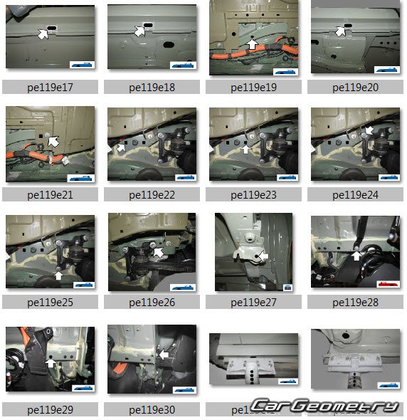 Кузовные размеры для восстановления геометрии кузова автомобилей Peugeot e-308 (EP51) 2022-2025. С помощью этих данных осуществляется проверка геометрии кузова, с последующей рихтовкой поврежденных частей автомобилей Пежо е308.
