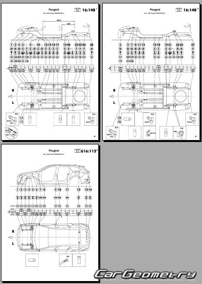 Выборка из стендовых баз по Peugeot 308 с 2021 (5DR, SW Wagon) Body dimensions, стендовые размеры кузова и контрольные точки геометрии Пежо 308 в кузове хетчбек и универсал.