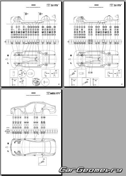 Кузовные размеры для восстановления геометрии кузова BMW M5 (F90) 2018-2024. С помощью этих данных осуществляется проверка геометрии кузова BMW M5, с последующей рихтовкой поврежденных частей БМВ М5 Ф90.