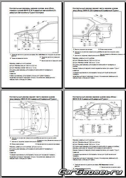 Выборка из заводской документации и различных стендовых баз по BMW 3 Series (E36) 1994-2000 Body dimensions, стендовые размеры кузова седан, вагон и контрольные точки геометрии БМВ Е36.