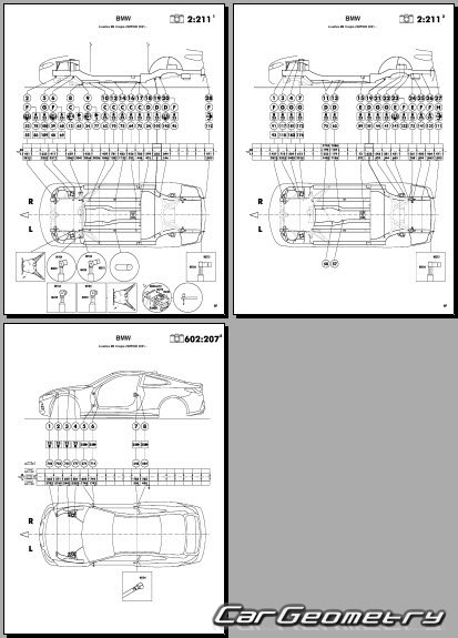 Кузовные размеры для восстановления геометрии кузова BMW M4 (G82) Coupe 2021-2026. С помощью этих данных осуществляется проверка геометрии кузова BMW 4 серии М4 Купе, с последующей рихтовкой поврежденных частей.