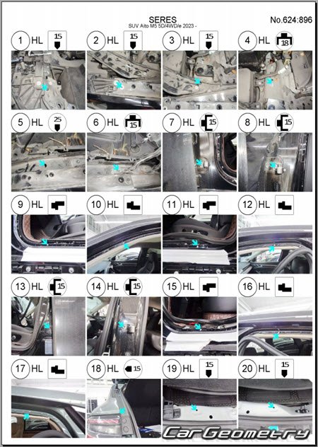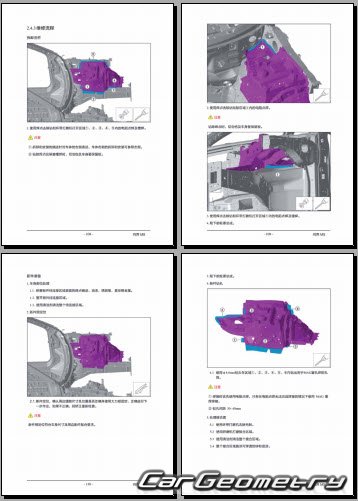 Руководство по кузовным работам AITO M5 2022-2027 Body Repair Manual на китайском языке содержит 395 страниц исключительно полезной и необходимой информации для мастеров, которые проверяют геометрию кузова после ДТП и хотят выполнить восстановление кузова Аито М5 согласно рекомендациям завода изготовителя.
