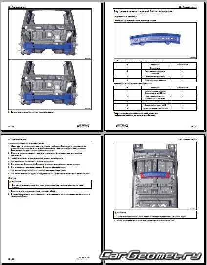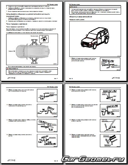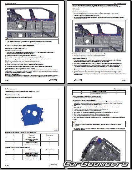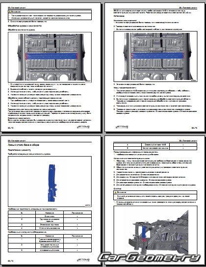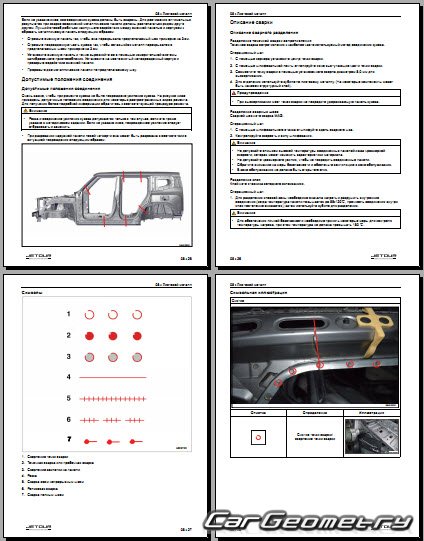 Руководство по кузовному ремонту Chery Jetour T2 (Body Repairs manual) 259 страниц на русском языке. Данный сборник содержит огромное количество исключительно полезной и необходимой информации для занимающихся кузовным ремонтом самостоятельно и владельцев фирм по кузовному ремонту Джетур Т2.