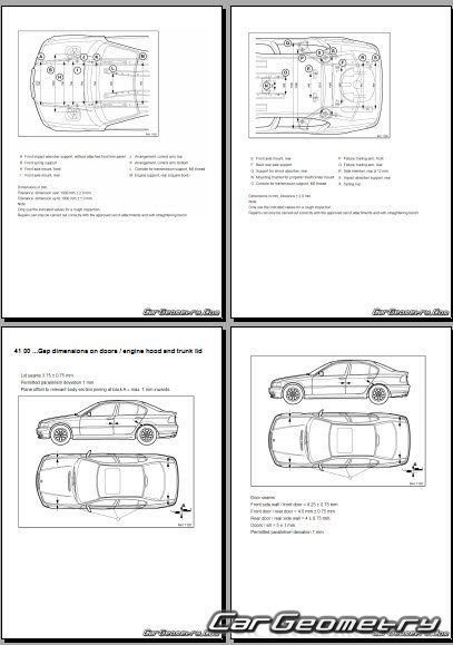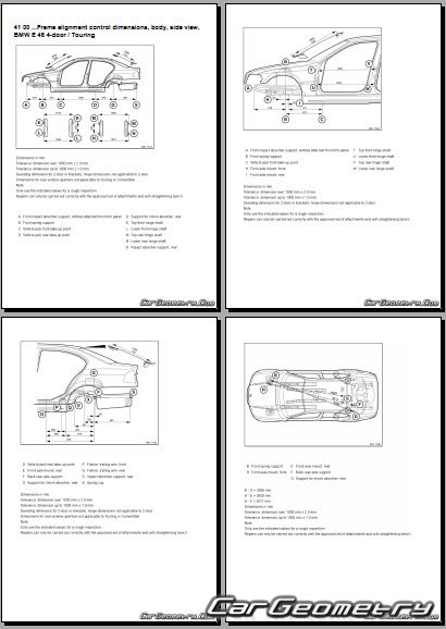 Выборка из заводской документации и различных стендовых баз по BMW 3 Series (E46) 2001-2005 Body dimensions, стендовые размеры кузова купе, компакт, родсте и контрольные точки геометрии БМВ Е46.