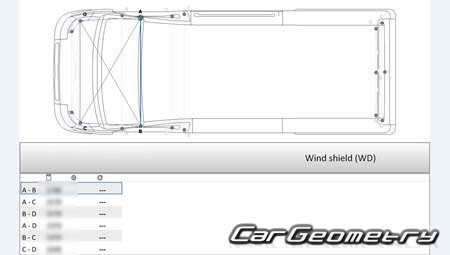 Кузовные размеры для восстановления геометрии кузова автомобилей Peugeot Boxer Van 2006–2016. С помощью этих данных осуществляется проверка геометрии кузова, с последующей рихтовкой поврежденных частей автомобилей Пежо Боксер короткая, средняя и длинная база.