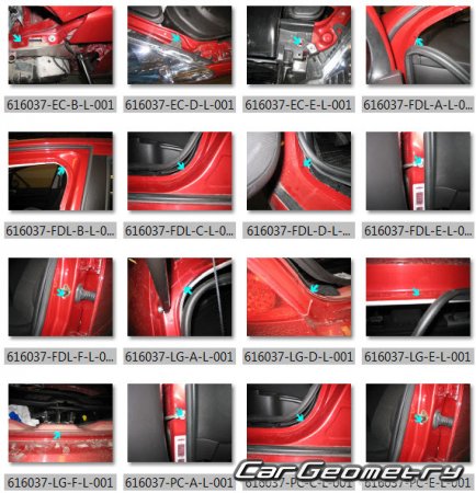 Выборка из стендовых баз по Peugeot 307 2005–2008 (3DR, 5DR Hatchback) Body dimensions, стендовые размеры кузова и контрольные точки геометрии Пежо 307.