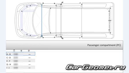 Кузовные размеры для восстановления геометрии кузова автомобилей Citroen Jumpy II 2007-2017 (Short и Long Van). С помощью этих данных осуществляется проверка геометрии кузова, с последующей рихтовкой поврежденных частей автомобилей Ситроен Джампи 2.