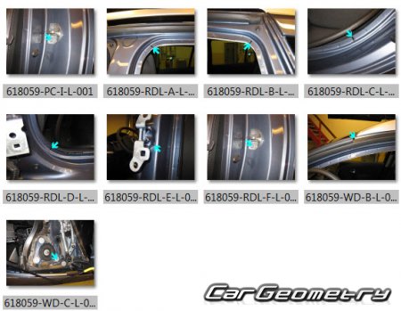 Кузовные размеры для восстановления геометрии кузова автомобилей Renault Clio Estate 2008-2013. С помощью этих данных осуществляется проверка геометрии кузова, с последующей рихтовкой поврежденных частей автомобилей Рено Клио Универсал.