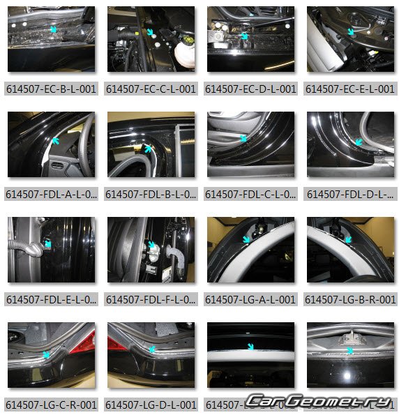 Кузовные размеры для восстановления геометрии кузова автомобилей Mercedes R-Class (W251) 2006-2013. С помощью этих данных осуществляется проверка геометрии кузова (SWB и LWB), с последующей рихтовкой поврежденных частей автомобилей Мерседес Р класса.