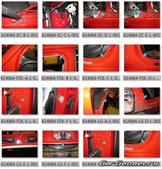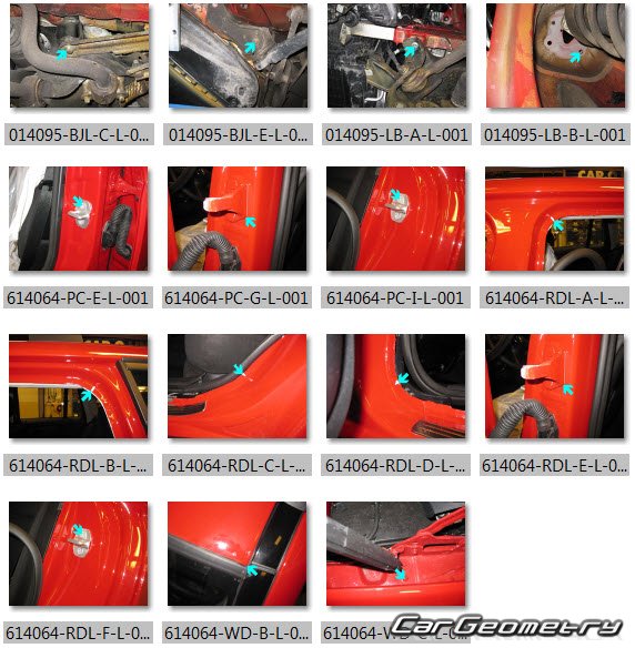 Кузовные размеры для восстановления геометрии кузова автомобилей Mercedes GLK-Class (X204) 2013-2015. С помощью этих данных осуществляется проверка геометрии кузова, с последующей рихтовкой поврежденных частей автомобилей Мерседес GLK класса.