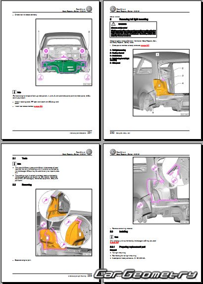 Руководство по кузовному ремонту VW Polo (Typ 6R) 2009–2018 Body Repair Manual 279+287 страниц на английском языке. Данный сборник содержит огромное количество исключительно полезной и необходимой информации для занимающихся кузовным ремонтом самостоятельно и владельцев фирм по кузовному ремонту Фольксваген Гольф.